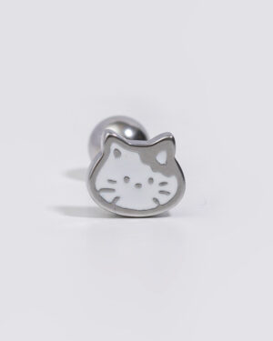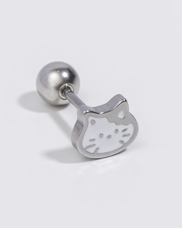 可愛小貓.(細)耳針|單支轉珠耳環 - 銀