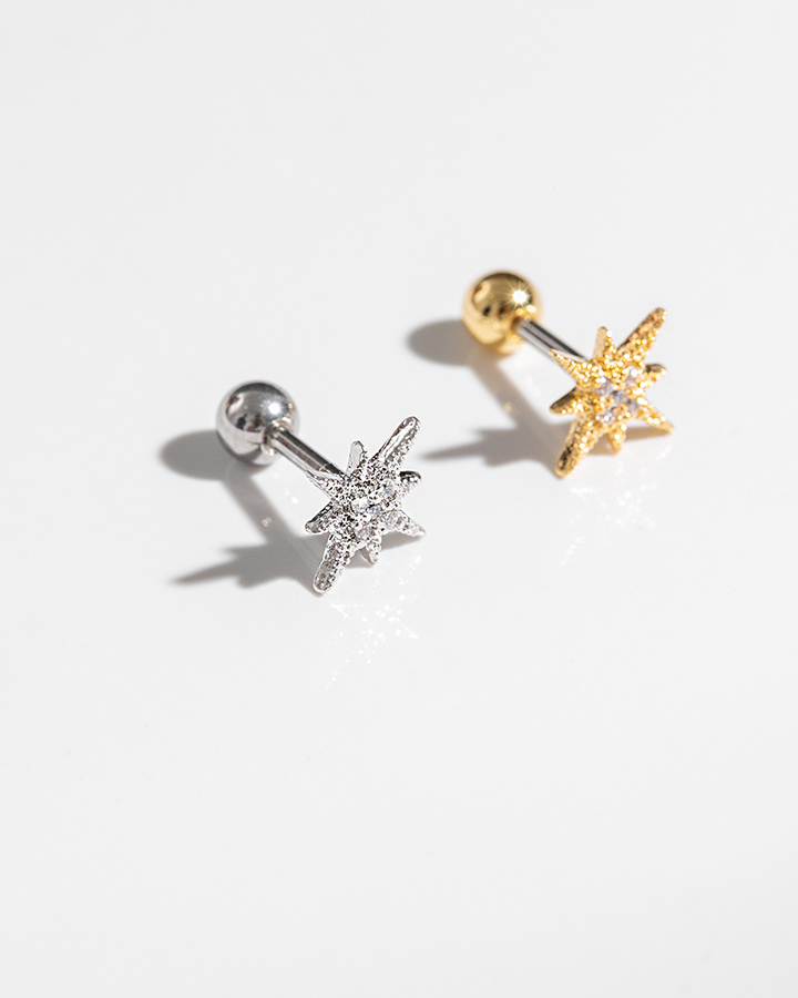 點綴夜空.耳針|純銀耳環 - 銀, 2.5mm