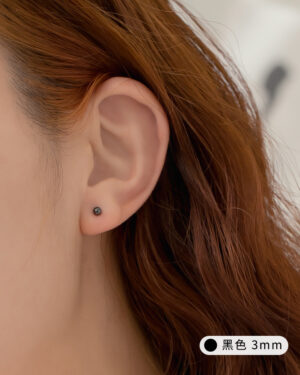 點綴夜空.耳針|純銀耳環 - 黑, 3mm